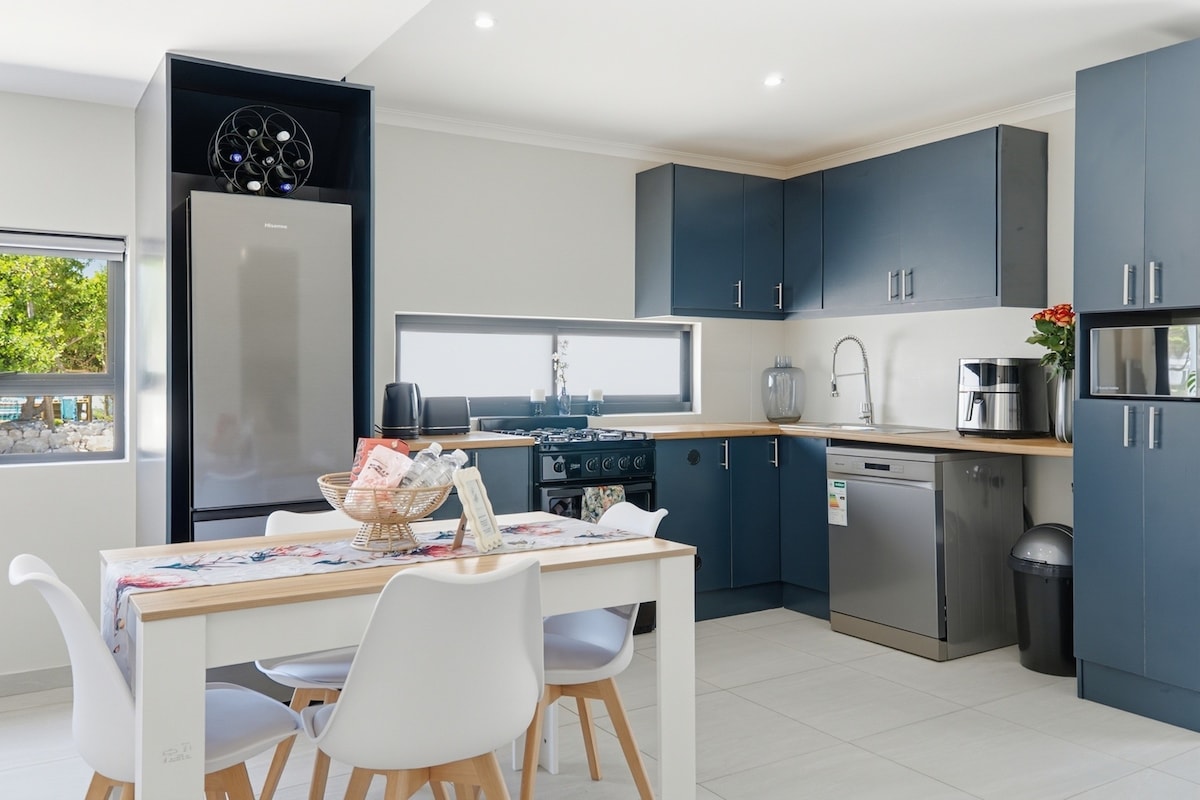 Villa frente a la playa con INVERSOR. Distancia a pie a 3 restaurantes frente a la playa, Kokomo, Friday Island y Wunderbar. La costa de Langebaan está muy cerca. SE ADMITEN MASCOTAS Y PISCINA TIPO INFINITO / FIESTA EN LA PLAYA. Ver solárium, una zona de braai/barbacoa protegida del viento del sudeste y vistas ininterrumpidas de las actividades de cometas, surf y SUP de parte cercana del centro deportivo de Cape. En la puerta de la impresionante laguna de Langebaan A poca distancia de Sharks Bay, una idílica bahía de kitesurf de estilo isleño.