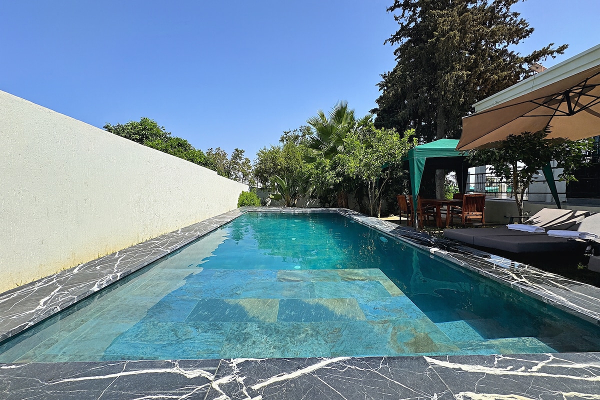 APARTAMENTO PRIVADO EN una VILLA muy grande en el barrio souissi cerca de la mezquita soukayna. el jardín y la piscina se COMPARTEN SOLO con los PROPIETARIOS QUE VIVEN el resto de la VILLA. EL APARTAMENTO TOTALMENTE INDEPENDIENTE con entrada y plaza de garaje privados, así como una terraza PRIVADA equipada con mobiliario de jardín frente a la piscina Supermercado a 3 min andando Tiendas , restaurantes y autobuses a 15 minutos a pie las llaves serán entregadas por los propietarios