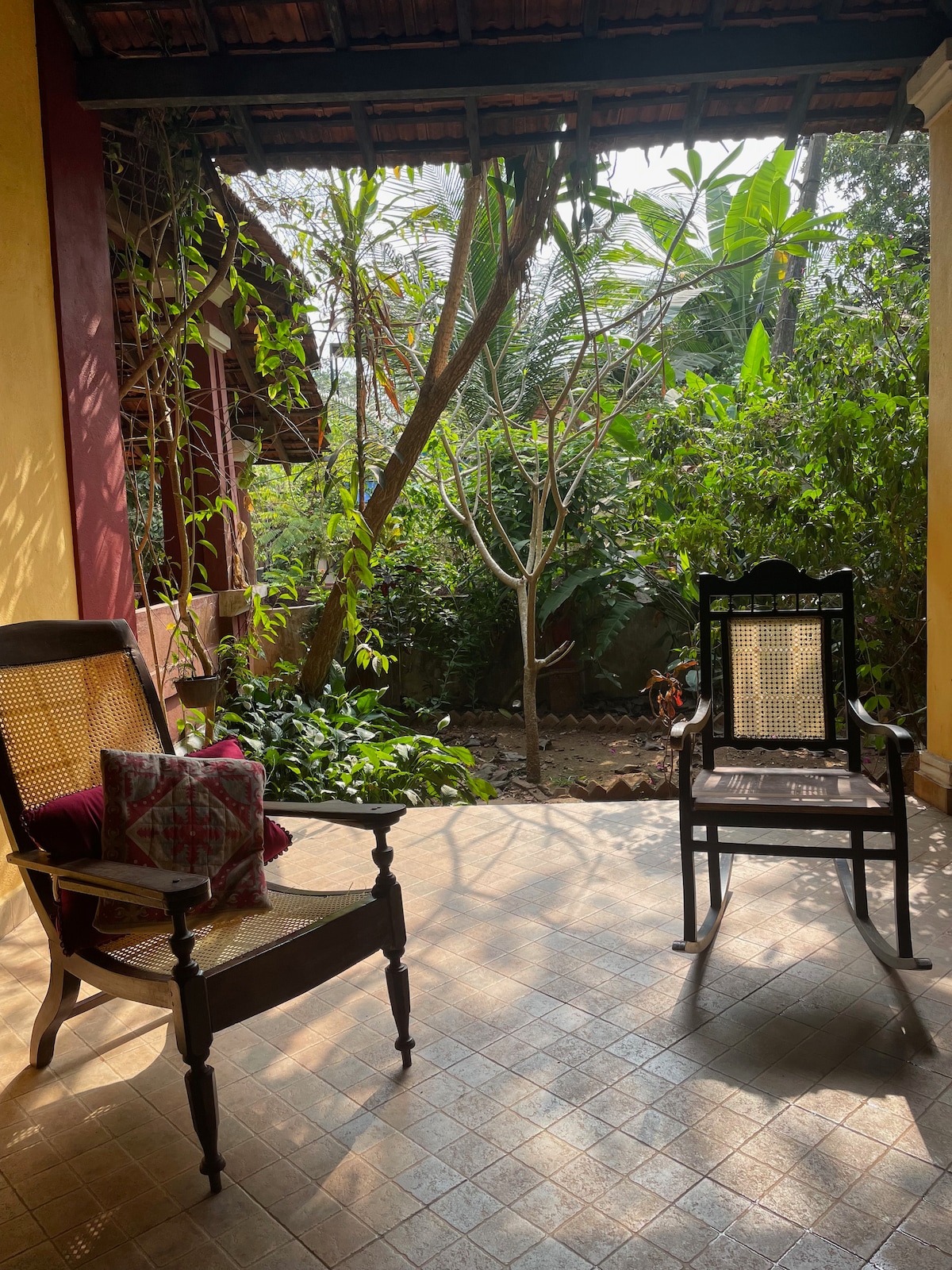 Un hermoso ambiente boho estaba en mi mente cuando creé esta impresionante casa de campo. Escondida en un rincón tranquilo, con vistas a un huerto orgánico con vistas a los campos, te transportarás a una época pasada donde las cosas eran mucho más lentas. Cuando pasar tiempo observando a los pájaros y las abejas, disfrutar de tazas de té sin prisas y charlar en el balcón era parte del día. Rodeado de árboles, verás la otra cara de Goa. Sin embargo, estás literalmente a 5 minutos del centro de fiestas de Goa.