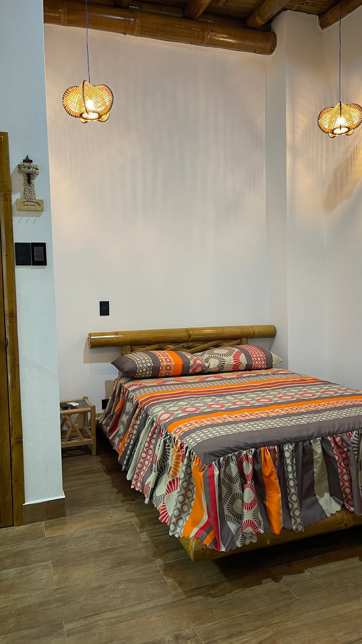 Cabañas Oasis no es un lugar lujoso: es auténtico. Los dueños viven allí y ofrecen una habitación familiar de bambú, con estilo rústico, cama litera doble e individual, baño privado, ducha caliente, TV con Netflix y YouTube, WiFi 5G y aire acondicionado. A solo 1 minuto caminando de la playa, en un pueblo de pescadores tranquilo. Ideal para familias o viajeros que buscan descanso en el camino.