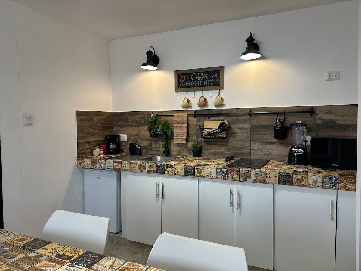 Acogedor y cómodo Loft, totalmente independiente con baño privado, Cerca del Aeropuerto Internacional y de la zona Industrial de Apodaca, estilo cafeteria vintage, equipado y acondicionado para disfrutar de una placentera estancia vacacional, trabajo, o Home Office. Colonia privada, Estacionamineto libre Frente a parque, 2 supermercados a 100 metros de la colonia y minisuper dentro de la colonia, Cerca de centros comerciales!, Vecindario seguro Incluye limpieza semanal en estancias largas