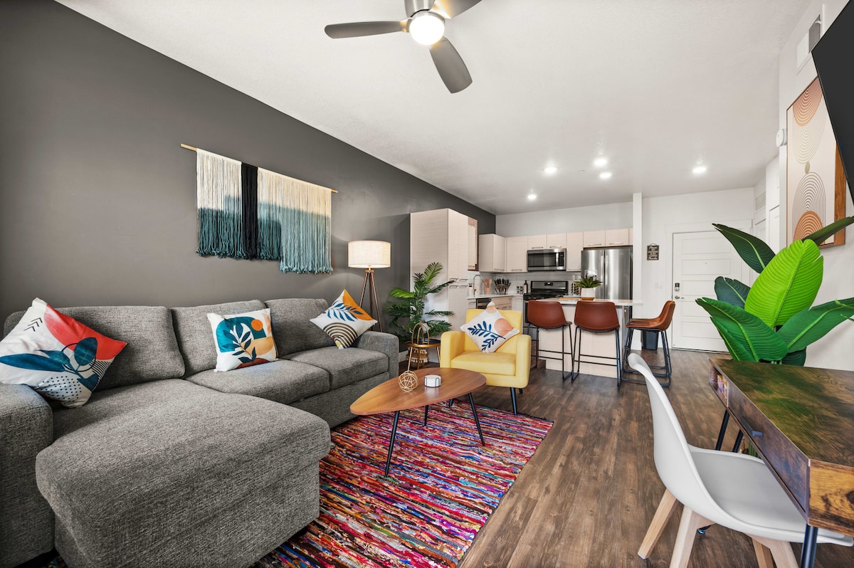 Disfrutarás de una experiencia elegante en este apartamento de lujo ubicado en el centro. A pocos pasos del Delta Center, Salt Palace, Gateway Mall y más. Estarás en un apartamento nuevo en el corazón de Salt Lake City. Puedes experimentar lo mejor que SLC tiene para ofrecer al estar cerca de tiendas, restaurantes, sitios históricos y a pocos minutos de las montañas. No importa tu estilo de vida, este es el mejor lugar de la ciudad para trabajar, explorar y conectar.