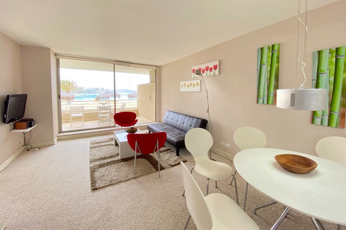 Bello y acogedor departamento con hermosa vista al mar y laguna. totalmente equipado, terraza con malla de protección y cerrada con vidrio templado. calefacción central (solo disponible en invierno). Estacionamiento privado en subterráneo Cuenta con un kayak doble, dos chalecos salvavidas y dos reposeras