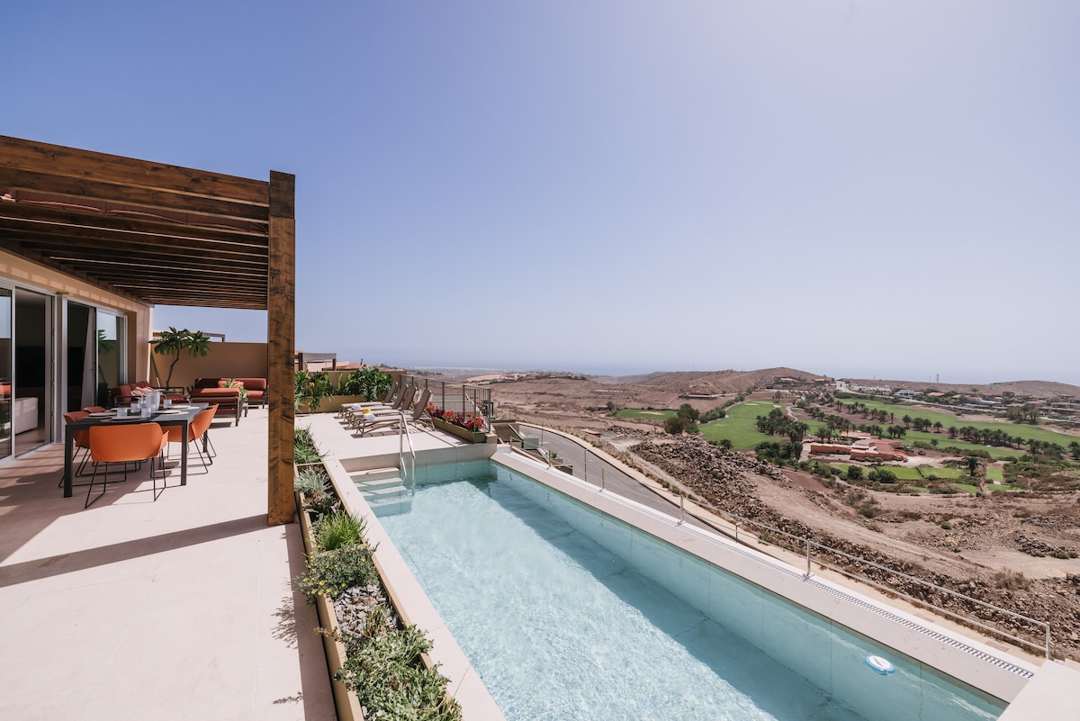 Salobre Oasis Suites brinda esta casa de diseño de 300m2 construida con materiales nobles y de alta gama. Nuestra Suite 2 es una casa pensada para una familia de cuatro personas o para un grupo de hasta 4 amigos que deseen compartir momentos de felicidad pudiendo disfrutar de forma hogareña y acogedora unas vacaciones de ensueño. Sus increíbles vistas directas al Campo de Golf del Salobre Golf será todo un deleite para los sentidos.