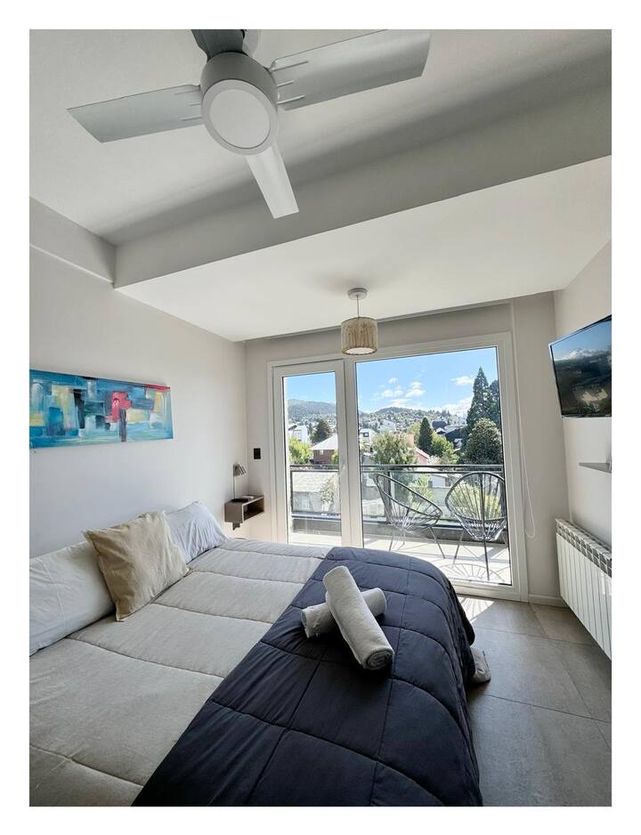Departamento hiper-céntrico con vista increíble. WiFi de alta conectividad (fibra óptica) Smart TV grande frente al sofa + Smart TV frente a la cama. Sabanas, toallas. Posibilidad de 1 cama grande (160m) o 2 camas single (80cm) Abajo del edificio pasan los colectivos para ir a circuito chico y cerro Catedral. Todos los comercios y calle semi-peatonal a 1 mn caminando.