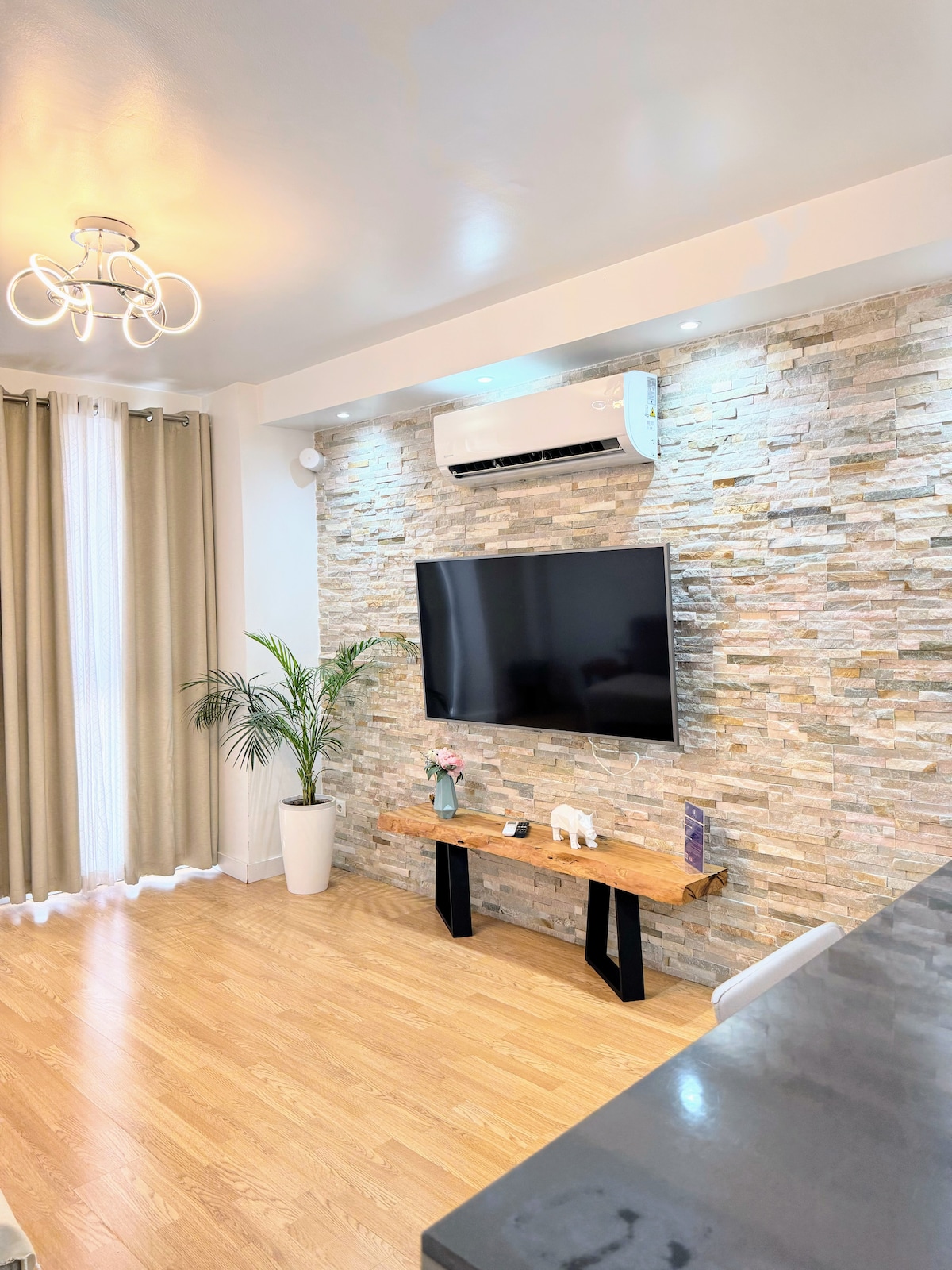 Apartamento amplio y luminoso situado en la zona de Puente de Vallecas. Cuenta con 2 habitaciones con cama de matrimonio y un sofá cama en la zona del salón, por lo que pueden alojarse hasta 6 personas. Además el apartamento dispone de aire acondicionado en todas las estancias y los huéspedes puedes disfrutar también de un patio exterior para relajarse después de una jornada conociendo la ciudad. La parada de metro de Nueva Numancia está situada a 3 minutos a pie de la propiedad.