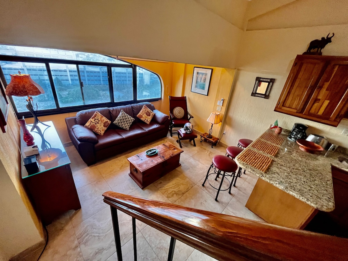 Estudio tipo loft en Cabo San Lucas, esta en un primer piso cuenta con escalera y entrada independiente sin elevador. A solo 20 min al centro en carro o autobús, además tiene tiendas de conveniencia cercas, la Plaza Caribe donde encontraras una serie de locales donde comer, ejercitarte y divertirte como también un Cine, cerca del domicilio por la avenida se encuentras Lavanderias, Taquerias, Cenadurias, etc.