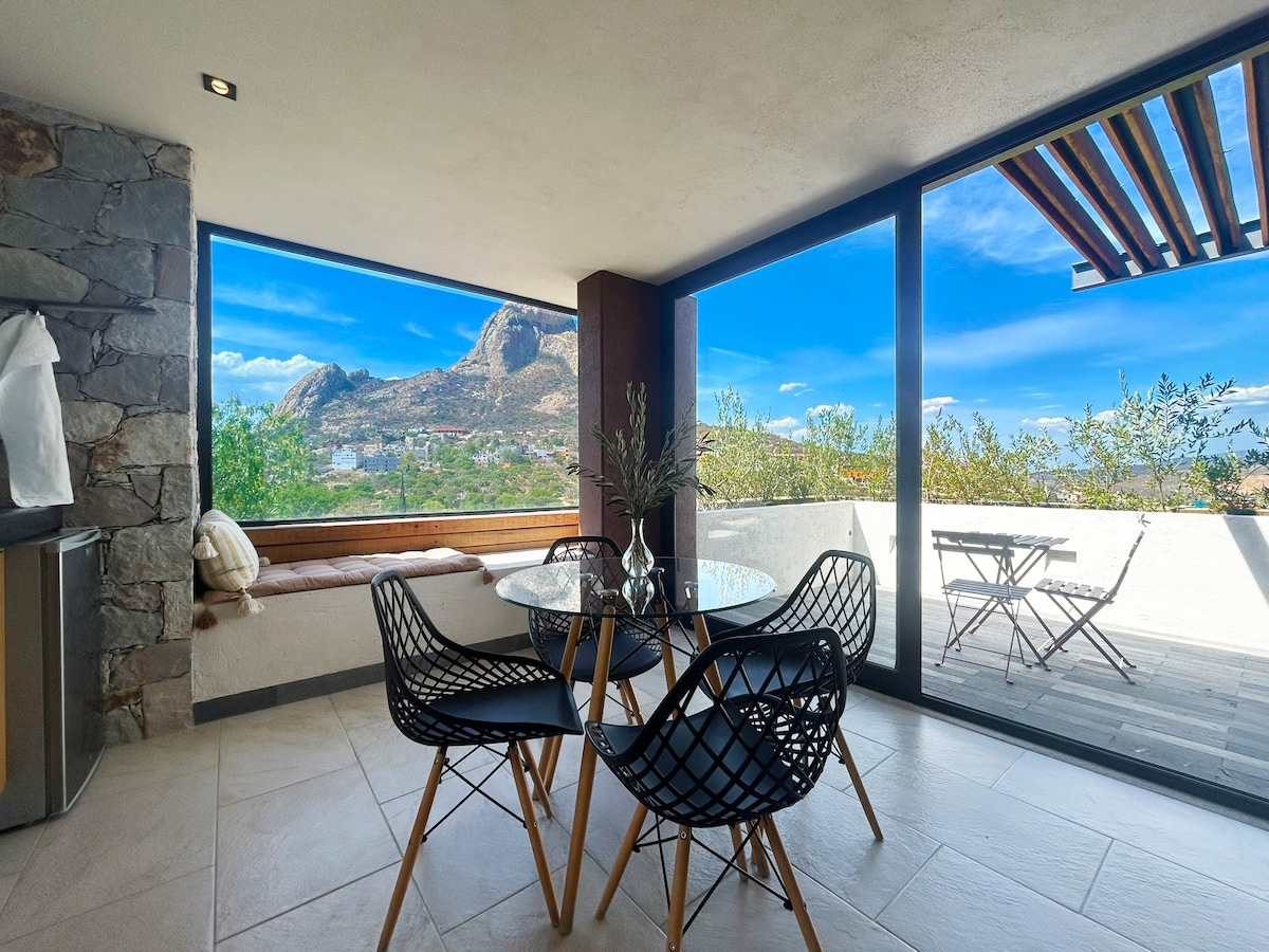 El mejor lugar para quedarte en el pueblo mágico de Bernal es nuestro hermoso departamento de dos recámaras. Cuenta con un diseño minimalista que mezcla los materiales y la flora caracteristicos de la región para lograr un ambiente agradable que siempre estará enmarcado por la Peña de Bernal, ya que fue orientado para tener las mejores vistas del monolito. Nos encontramos en el centro de la ciudad, es perfecto para moverse caminando. Contamos con vigilancia a todo momento y la mejor terraza.
