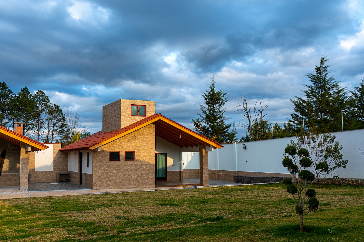 Hermosa y acogedora cabaña con alberca y jardín