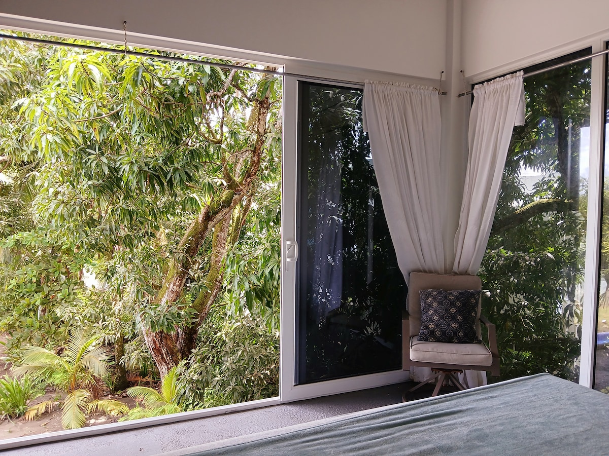 Hermosa vista tropical, cama tamaño king, aire acondicionado y piscina infinita.