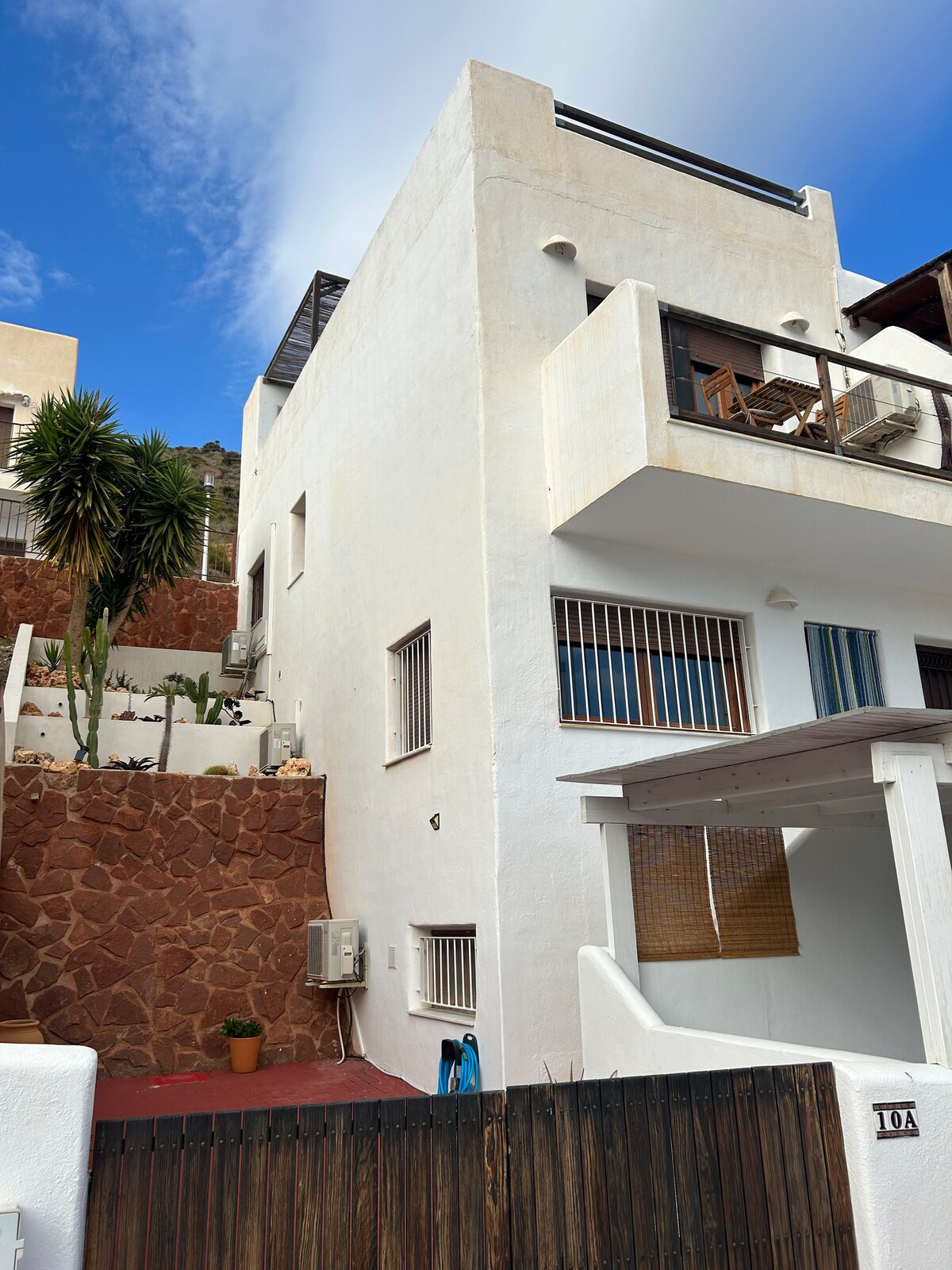 Casa con terraza, luminosa y fresca, en una zona tranquila en El Pozo de los Frailes, en pleno corazón del Parque Natural de Cabo de Gata-Níjar. A pocos minutos de San José y de las playas más espectaculares de esta reserva de la biosfera. Cuenta con una espaciosa habitación, un área diáfana con cocina/comedor/salón y una terraza con toldo extensible para disfrutar del clima paradisíaco durante todo el año. El apartamento no cuenta con aire acondicionado (sí con ventiladores de techo y suelo).
