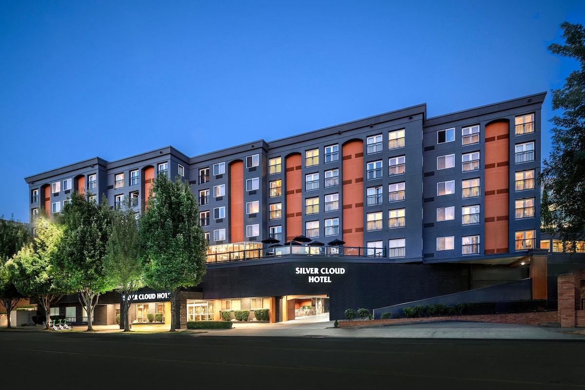 A solo unos pasos del mercado de Pike Place y escondido entre los mejores bocados de Belltown y el bullicio del centro, Kimpton Palladian se siente más como un elegante apartamento de la ciudad que como un hotel. Toma cócteles en el bar de mal humor, cena en el restaurante del hotel o escabúllete a hacer ejercicio en el gimnasio antes de que la ciudad se despierte. Con un diseño atrevido, una hora de vino todos los días y un ambiente más local que el vestíbulo, es el tipo de estancia a la que querrás volver: se admiten mascotas.