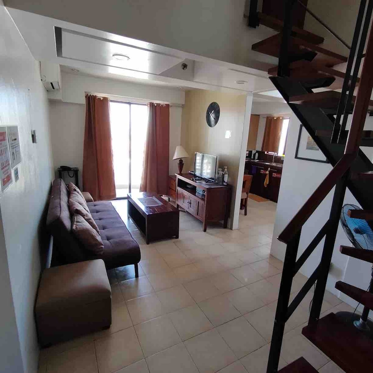 Relax and enjoy the chill vibes in this industrial-themed designer loft, situated in the heart of Mandaluyong City and Ortigas ● High-speed wifi with a 100Mbps connection, perfect for working remotely ● 55-inch Smart TV with Netflix and Amazon Prime for that awesome binge-worthy weekend ● Just a short walking distance from Edsa Shangri-La, SM Megamall, Estancia and Rockwell Business Centre ● Satisfy your appetite from numerous nearby restaurants, bars, weekend night markets and food trucks