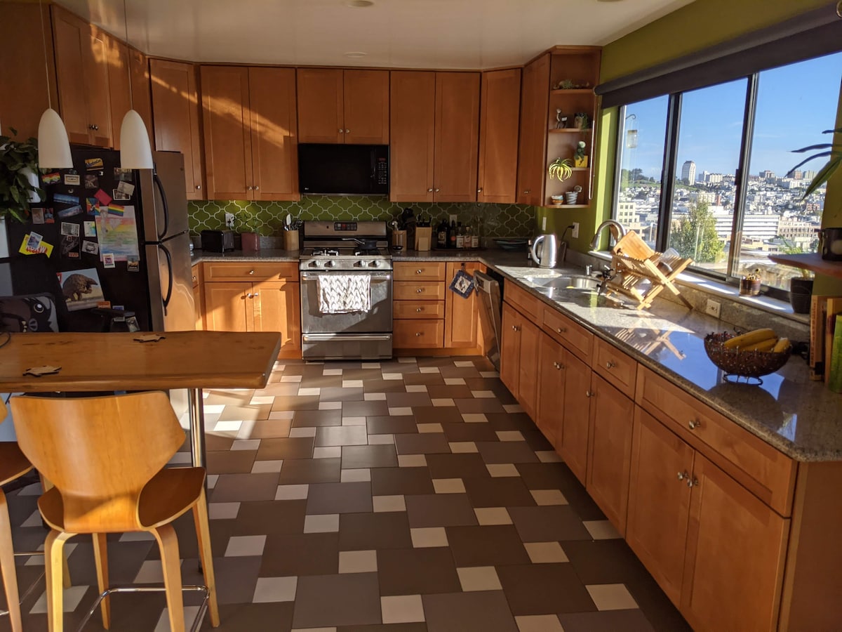 Imagen-perfecto condominio Nob Hill de 1 dormitorio que ofrece vistas deslumbrantes, incluido el puente Golden Gate. Bloque de primera con lo mejor de la ciudad justo afuera de tu puerta. Paisajes callejeros encantadores. 97 WalkScore. ¡Y una línea de teleférico justo en la esquina! Trader Joe 's a tres cuadras de distancia, con un grupo de restaurantes, cafeterías, pubs, boutiques y vinotecas cerca. Planta abierta, electrodomésticos de acero inoxidable, lavadora/secadora en el alojamiento y almacenamiento adicional. Terraza en la azotea con barbacoa, mesas, sofás y chimenea.