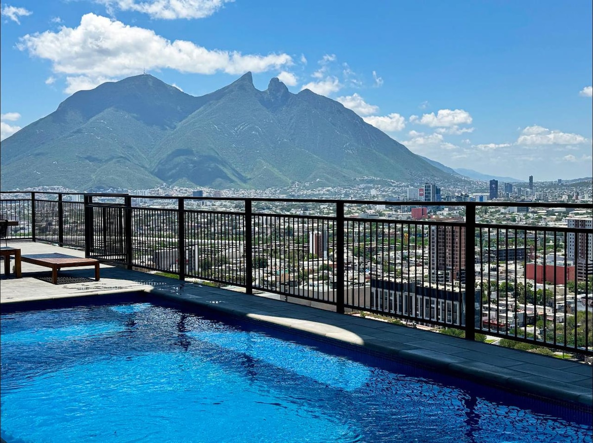 Vista al Cerro de la Silla+Alberca+GYM+Co-Work