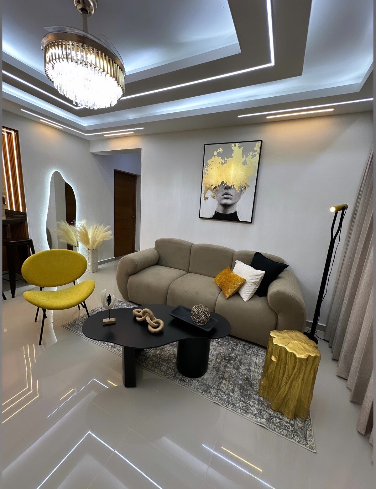 Espacioso, cuidadosamente decorado y muy iluminado, como una burbuja flotando en el inmenso Mar Caribe brindandote una sension de paz y relajacion en todos los detalles y colores que se coomplementa por todas las comodidades que lo componen. Tiene una vista panoramica de 180 grados de Juan Dolio y sus espectaculares atardeceres de colores brillantes que son un espectaculo para disfrutar en familia y amigos, con la arena en tus pies o las brisas caribeñas en las alturas del piso 19.