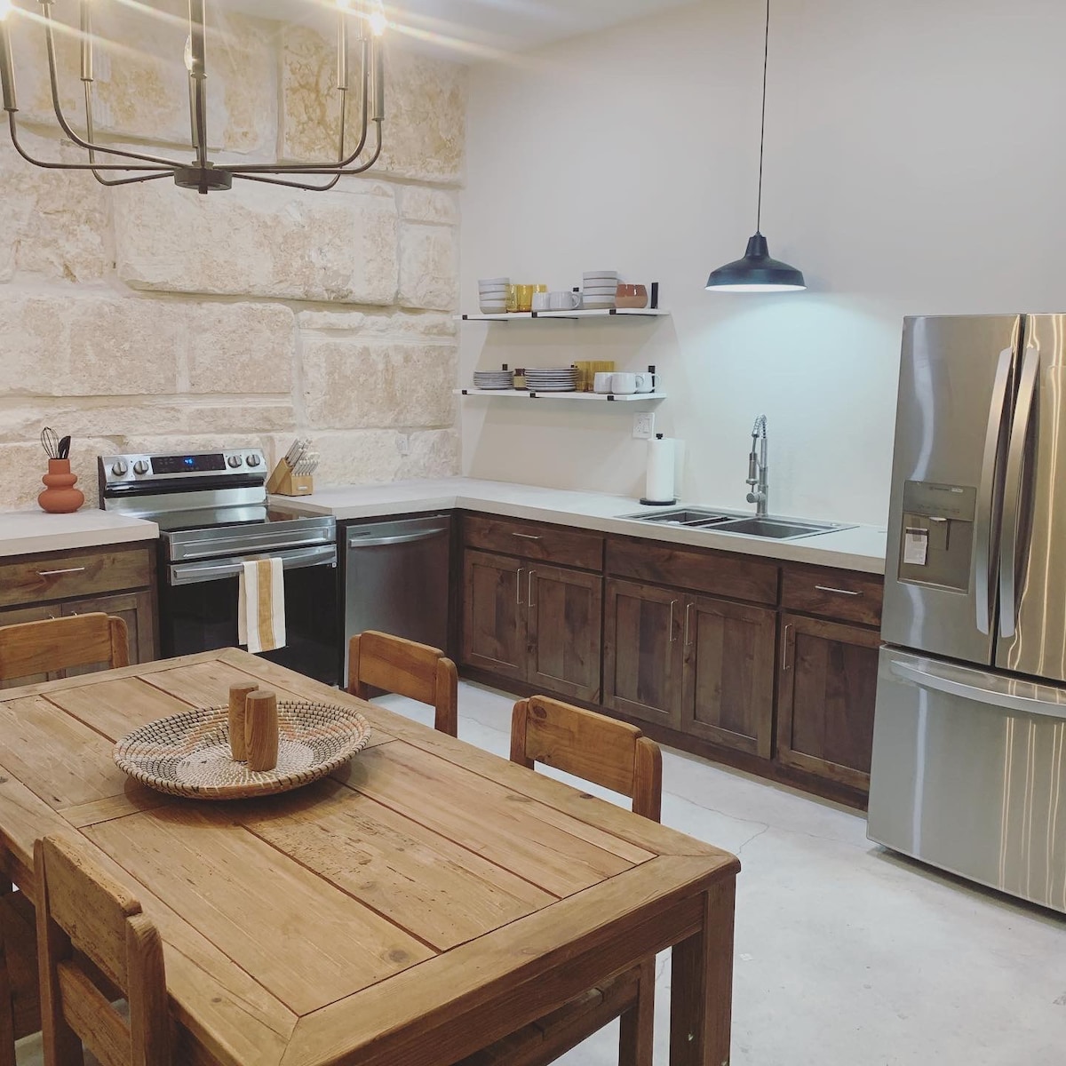 Dolomite Lodge se encuentra en el rancho 5J, a solo 3,5 millas de San Saba, Texas. Esta hermosa casa ofrece un sinfín de comodidades... cocina de chef totalmente surtida, decoración de primer nivel, fabulosa zona al aire libre con piscina privada que cuenta con vistas de kilómetros. Con amplios techos abovedados y acabados de alta gama en todas partes, los huéspedes seguramente se sentirán mimados en esta increíble propiedad. ¡Vida de lujo en el corazón de Texas Hill Country, con bodegas locales, tiendas y restaurantes a pocos minutos!