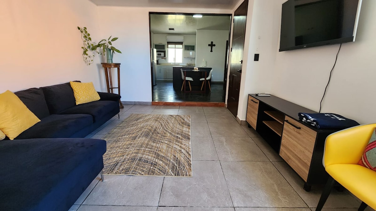 Relájate con toda la familia en este alojamiento donde la tranquilidad se respira en este espacio en la naturaleza, apartamento de 55 metros cuadrados con entrada privada, con cocina y baño privado, ideal para descansar. Apartamento con todo lo necesario para satisfacer tus necesidades, internet de fibra óptica de 100mb, cable tv de 58 pulgadas, Netflix, Spotify, amplio parqueo, aire acondicionado, agua caliente y cocina completa Ubicación perfecta a solo 5 cuadras del parque central caminando