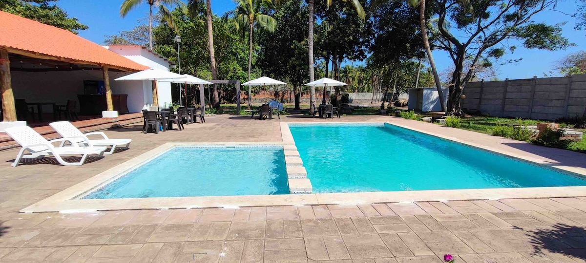 Ven a relajarte junto a nuestro río tropical con vistas al mar. Despiértate y ve a surfear por la mañana, luego disfruta de tu partido deportivo favorito en nuestro bar deportivo mientras disfrutas de la deliciosa comida salvadoreña. Nuestras habitaciones son cómodas y están limpias, con aire acondicionado, televisores con Netflix, wifi y baños privados. Tenemos un restaurante de servicio completo en el hotel que ofrece desayuno, almuerzo y cena, y un bar deportivo donde puedes estar al día con todos tus deportes, ofreciendo cervezas y cócteles locales e internacionales. El desayuno está incluido.