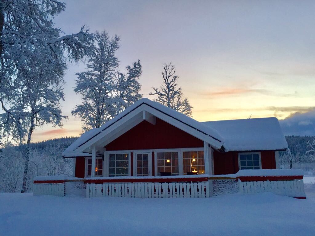 A perfect place for anyone who loves exploring the Norwegian nature, or simply wants to look at it while lounging on the couch. The river that runs right beside the cabin is perfect for canoeing. And you can regularly see birds, moose, and other wildlife by the river. There are also good hiking areas, ski tracks, and snowmobile trails. The cabin is located in Herringen, 18km outside the city centre. We have all basic facilities, WiFi, TV, toilet, heated floors, dishwasher, & washing machine.