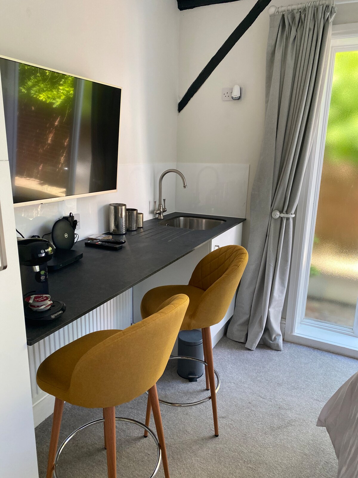 Formando parte de un establo original del siglo XVIII ubicado en el corazón de la histórica ciudad medieval de Sandwich, encontrarás esta conversión de planta abierta escondida en el primer piso que ha sido renovada con un alto nivel creando un espacio de vida luminoso y espacioso en los aleros de la sección del establo y el granero. La propiedad tiene su entrada propia a través de una escalera exterior de madera en el lateral que conduce al primer piso. Hay un patio, no tenemos aparcamiento en el sitio para los huéspedes, pero hay un aparcamiento a 2 minutos a pie.
