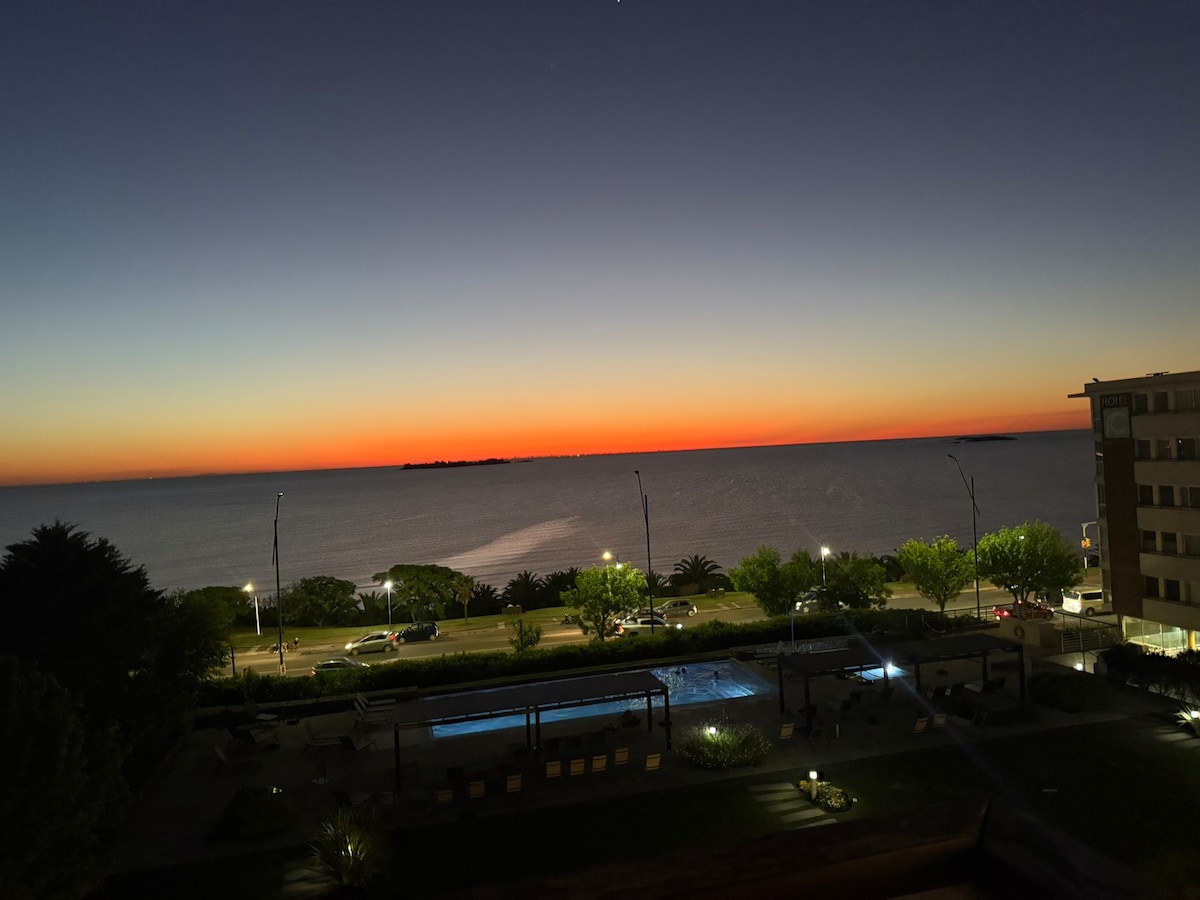 Hermoso apartamento dentro del complejo del Hotel Dazzler. Cuenta con interminables comodidades como piscina externa e interna, jacuzzi, sauna y gimnasio entre otros. Seguridad las 24 hs del día. El departamento es amplio e increíblemente cómodo. Ultra luminoso gracias a su frente vidriado y con vistas panorámicas. El edificio esta ubicado frente al rio, sobre La Rambla. El centro de la ciudad y su Casco Histórico se encuentran a 2,5 kms.