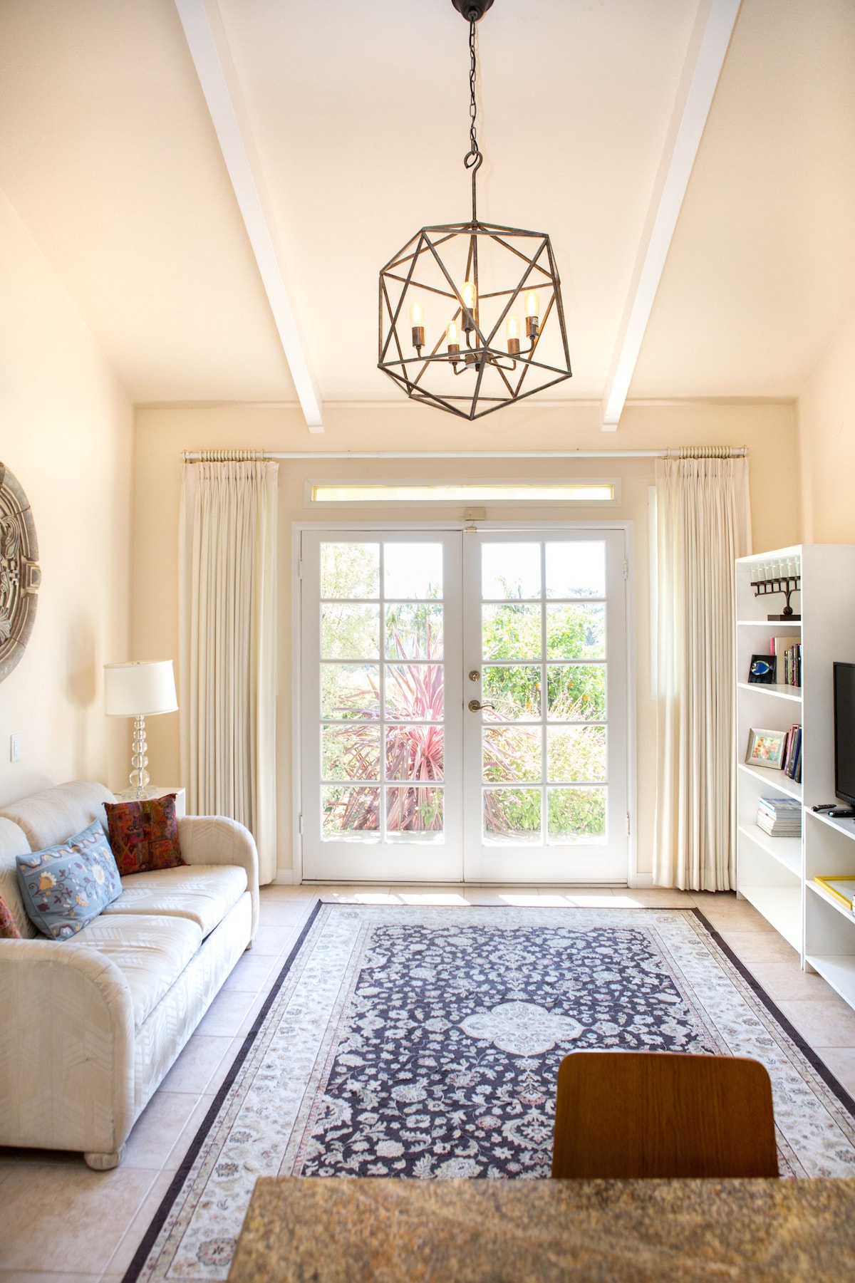 Newly renovated rear unit of house. Separate entrance, bedroom, living room/2d bedroom, secluded yard. Spacious, high-ceilings, sparkling clean. Upscale bathroom, 55”-Smart-TV, hi-speed WiFi, new bed, new full-size futon. Located 100 yards from 75-acre Kirk and Michael Douglas Preserve, 1-mile of beach. Very safe, quiet "Mesa" neighborhood, two shopping centers. Downtown is 2.5 miles. Backyard now features sunny sitting area. Concrete floors now restaurant-style polished.