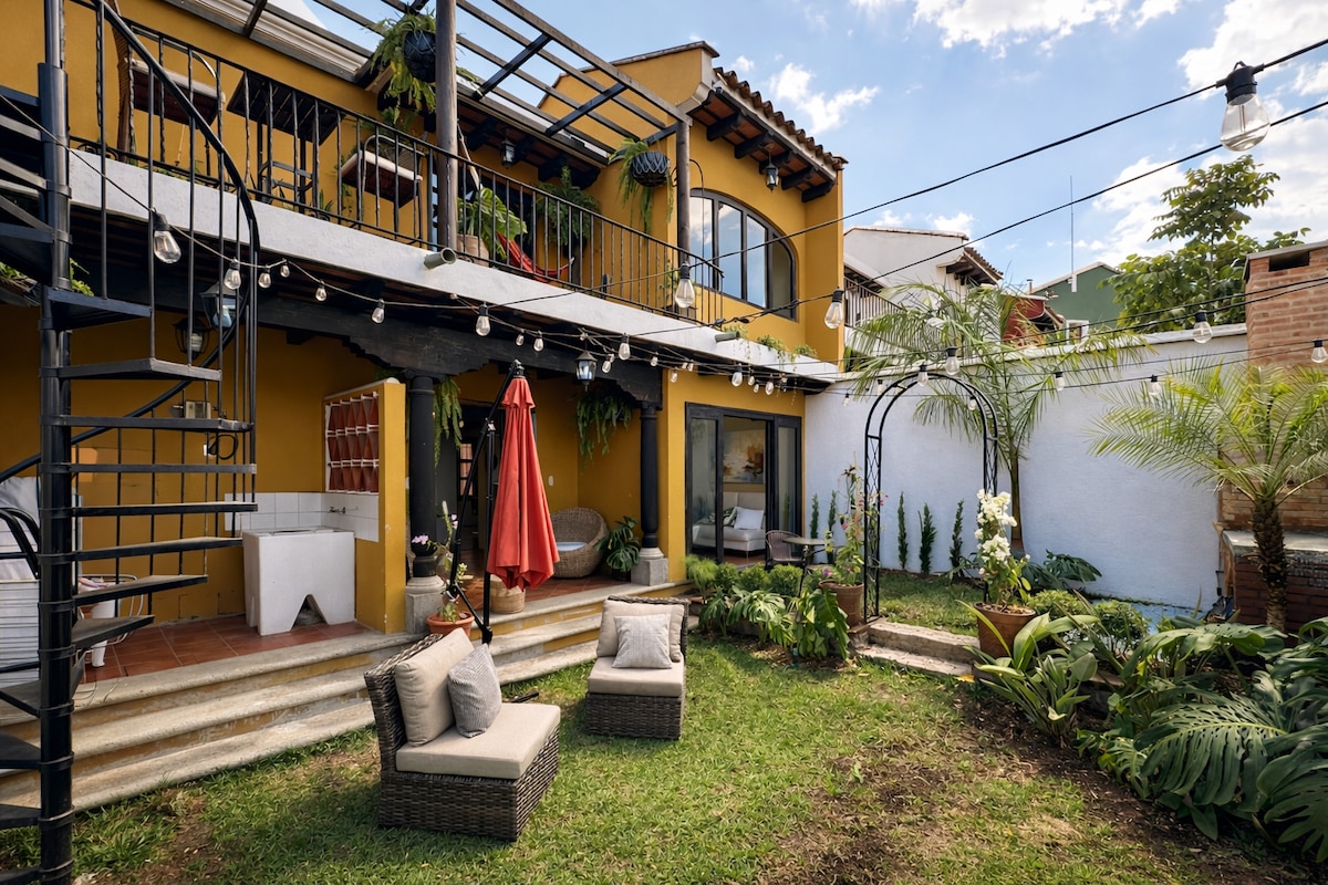 Wake up to breathtaking volcano views and enjoy your morning coffee on a private rooftop terrace in this spacious 4-bedroom home just minutes from central Antigua. Perfect for families, friends, and wedding groups, our home combines the charm of Antigua with modern comfort, security, and space to truly relax. Located in a peaceful gated community with 24/7 security, you’ll enjoy tranquility at night while being just a short drive from Antigua’s restaurants, cafés, ruins, and vibrant culture.
