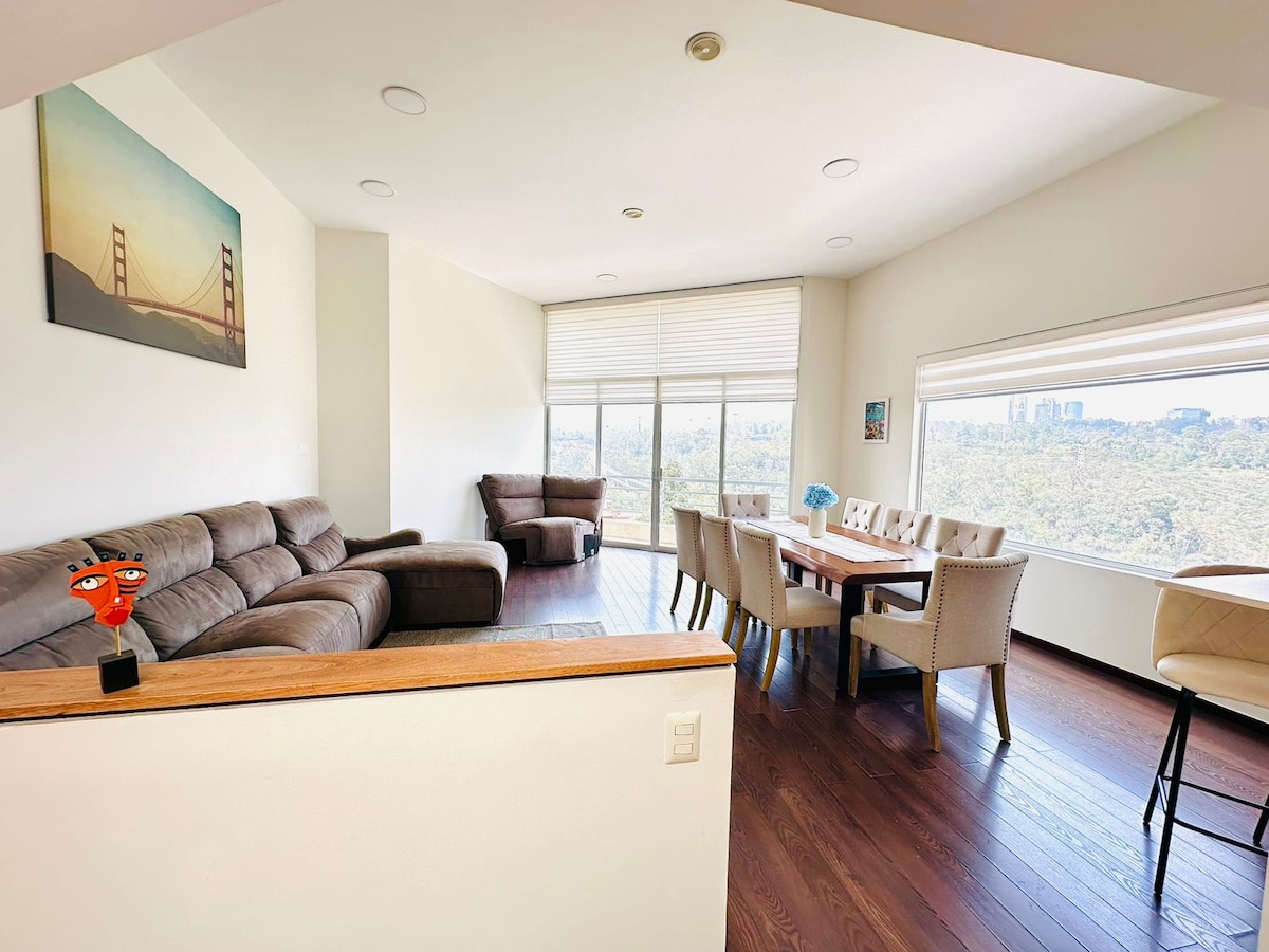 BRAND NEW¡ Excellent location in the heart of Mexico City! 24 hr maximum security! Located in Santa Fe which is the fanciest zone in the city. Apartment located in a high floor with an amazing view of Mexico City. Perfect choice for business trips, family trips or just vacations with friends. Enjoy great location and great place with luxurious amenities, rivals any of the local 5 star hotels around the area.