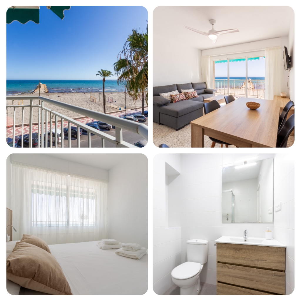 AQUÍ NO VIENES SOLO A DORMIR FRENTE AL MAR, VIENES A VIVIRLO. ✨ Despierta cada mañana con un horizonte infinito sobre el mar Mediterráneo. Espectacular apartamento de 140 m² en primera línea de playa, disfrutarás de vistas panorámicas desde dos terrazas, amaneceres que pintan el cielo de naranja y atardeceres que te invitan a una copa en familia o con amigos. Ideal para grupos grandes o familias (hasta 10 personas), es el lugar perfecto para crear recuerdos inolvidables en la Costa Blanca.