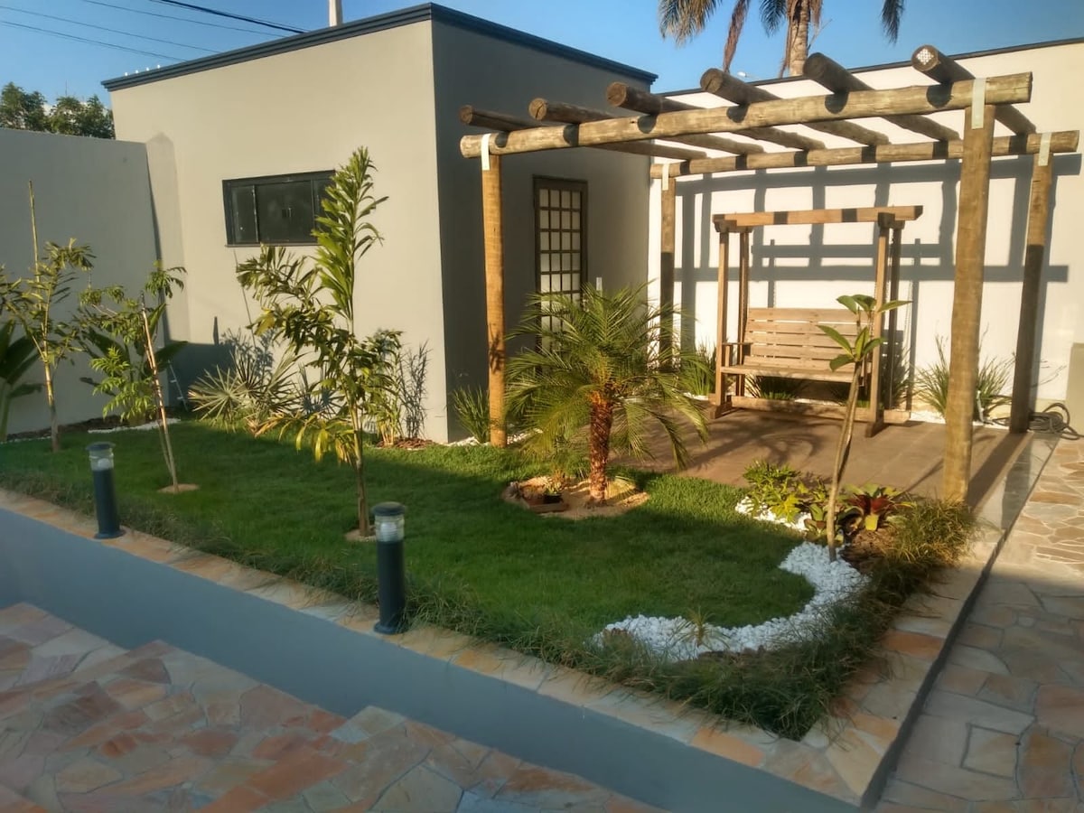 Enjoy your best time in a place that will welcome you and your company, with a lot of fun, calm, comfort and safety. Located in the best and safest residential neighborhood in the city, your next destination is a complete house in the countryside, which comfortably accommodates a group of up to 12 people. Its structure is planned so that the time of leisure and rest are fully taken advantage of, with all rooms and areas equipped to meet the needs of guests. Welcome!