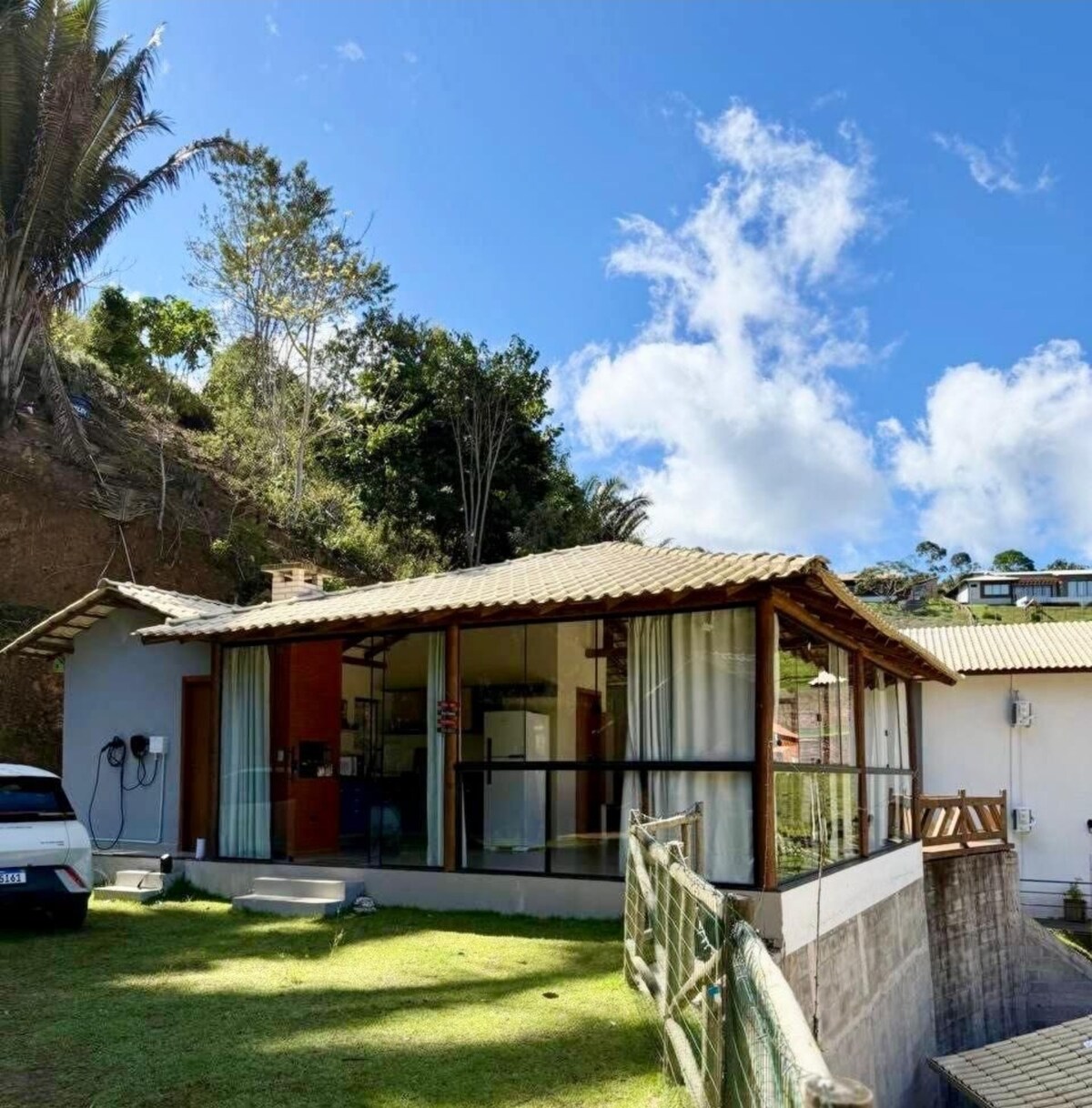Trae a tu familia para lo mejor de las montañas de Capixabas. Casa en comunidad cerrada, segura y reservada. Para aquellos que gustan la naturaleza, un entorno muy verde, aves y una temperatura agradable. ¡La casa ofrece todas las comodidades para tu estancia! Dormitorios con ropa de cama, baños con toallas y ducha caliente, cocina completa con utensilios, TV de 60pulgadas, acceso a Internet 5G, señal telefónica (en vivo). Terraza panorámica con piscina, barbacoa americana y chimenea al aire libre