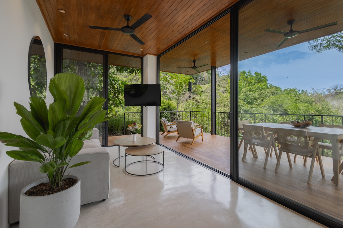 Las vistas al mar, al bosque y al jardín se encuentran desde todas las ventanas o puertas de este departamento tipo estudio. Todas las mañanas, uno es recibido por los sonidos de la naturaleza y la luz de un suave amanecer en el horizonte. Este estudio es perfecto para aquellos que disfrutan bebiendo su taza de café o té temprano en la mañana, y ver la selva tropical cobrar vida. Para aquellos que deseen tirar de las cortinas y extender su relajante sueño de lujo, el estudio está bien equipado para hacerlo también.