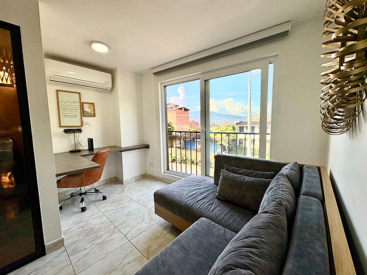 Espacios amplios, balcon, sala comedor, cocina, dos habitaciones, cada una con cama doble, buena ventilación e iluminación, un baño amplio, todo con un toque acogedor, que te hará sentir como en casa. La ubicación es estratégica, estarás a 8 minutos caminando de la estación metro Envigado y del centro comercial Viva, a 10 minutos en trasporte público del poblado y a 15 minutos en metro del centro de Medellín.