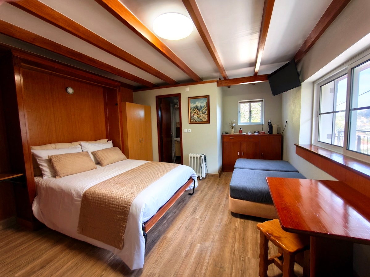 Estudio, tipología T0, planta baja, vivienda moderna y plana, acceso sin escalones. Cuenta con 1 cama de matrimonio, 1 sofá cama, un baño con ducha, sala de estar con cocina completa, donde podrá preparar sus comidas. En el exterior, podrá sentarse y disfrutar de las vistas, también hay una barbacoa que puede utilizar de forma gratuita. En este espacio se pueden alojar tres personas perfectamente. Decoración sencilla y moderna. Se encuentra a 10 minutos a pie del centro de Santana o Rocha do Navio.