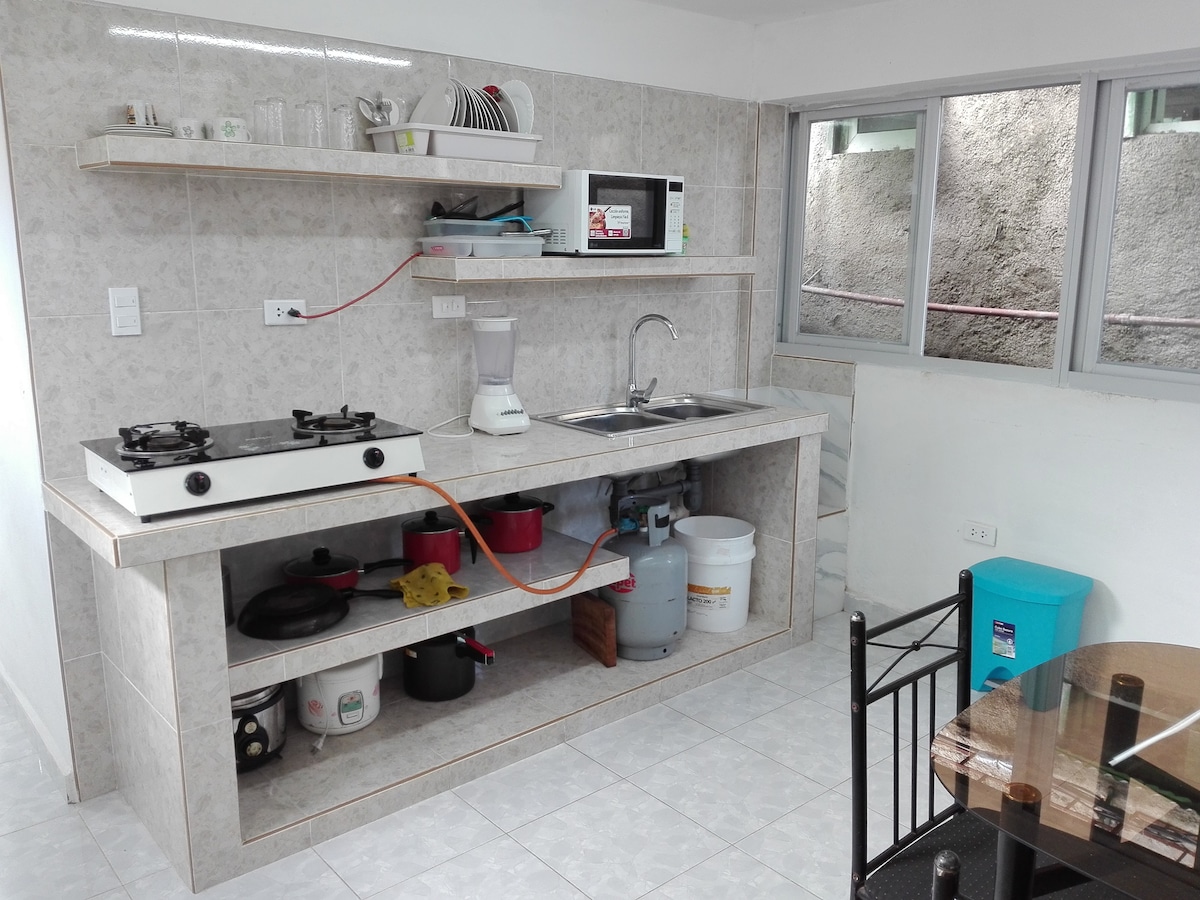 Habitación doble, moderna, muy ventilada e iluminada, cama extra grande, baño privado dentro de la habitación, agua caliente, split. Cocina completa, entrada independiente en casa exclusiva para huéspedes, se entregan las llaves. Terraza amueblada, muy grande con exuberante vegetación, se preparan desayunos.
