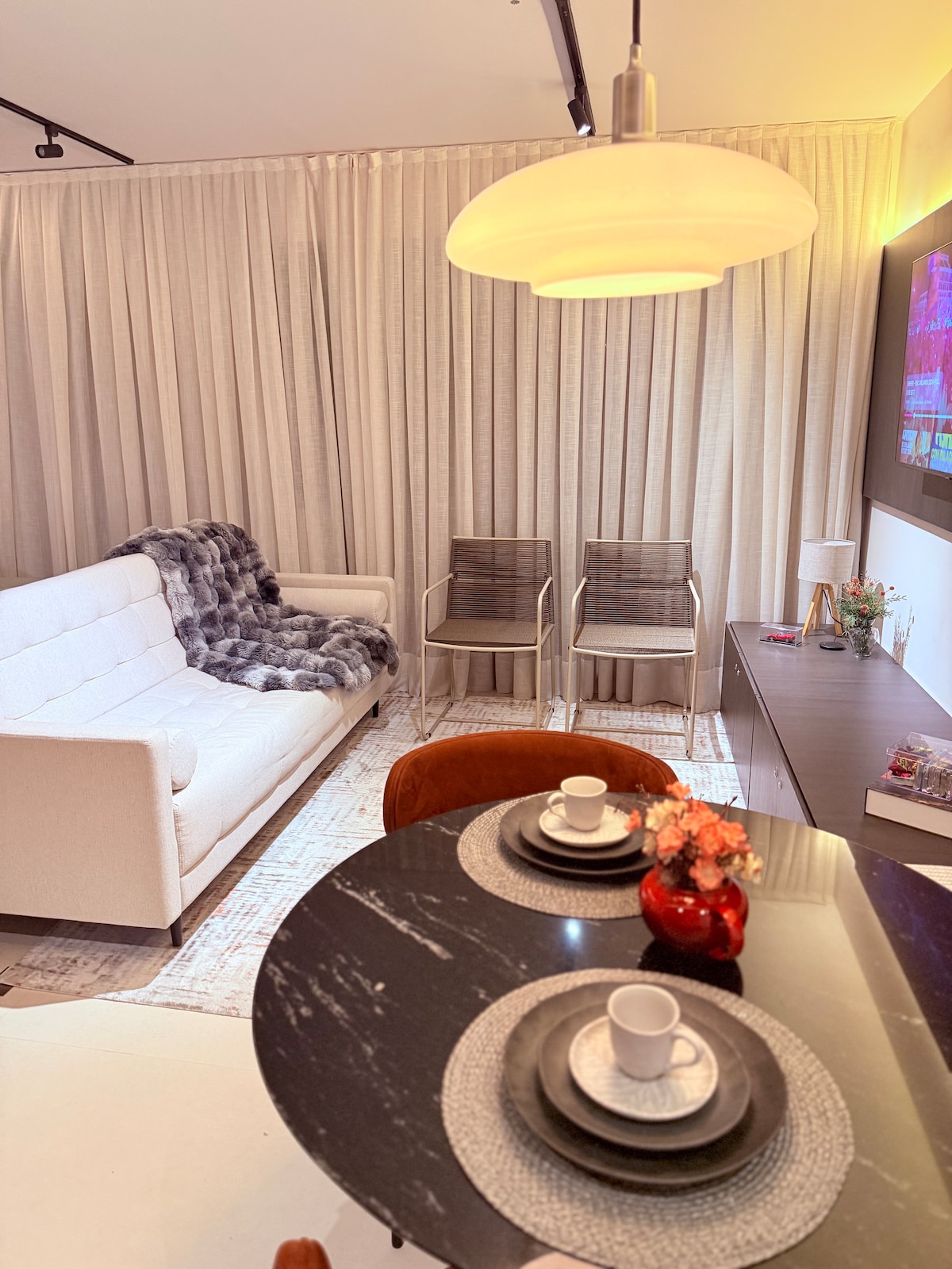 ¡Comodidad y ocio en São Bernardo! Perfecto para un máximo de 2 huéspedes, con wifi rápido, TV inteligente, balcón privado y servicios completos: piscina, sauna, gimnasio L7 de Lucas Moura, canchas de arena y restaurante. Estratégicamente ubicado cerca de la Av. Kennedy, centros comerciales, parques y con fácil acceso a São Paulo y la costa.