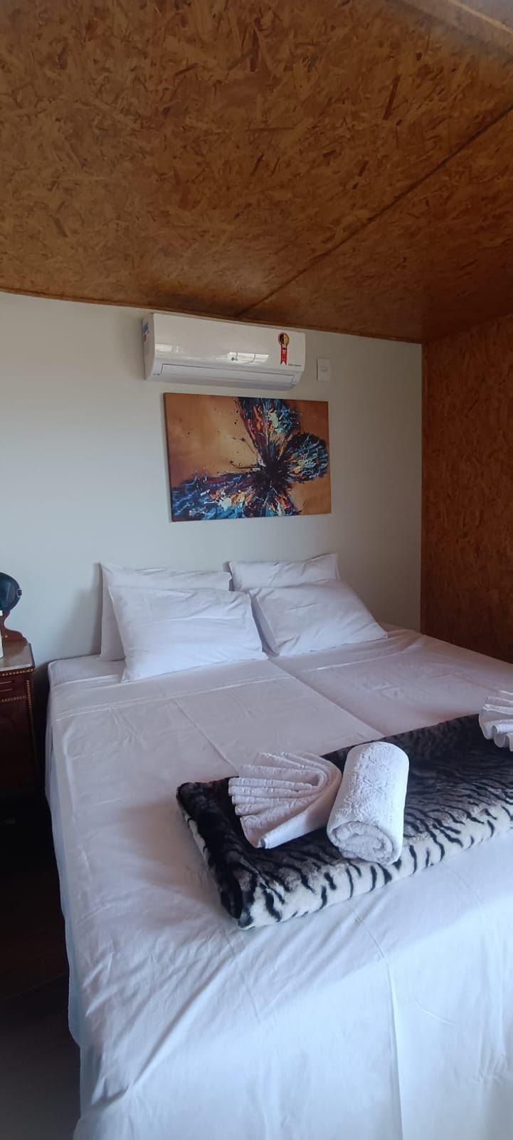 A cozy and refined chalet with a mezzanine, fine finishes and a kingsize bed. On the ground floor there is a large living room, work desk, kitchen and living room and a beautiful and spacious bathroom, with a double sofa bed. It has a balcony with a beautiful view and an outdoor shower. Pure spring water in every faucet, amazing views from the windows. Outside a trail leads straight to a private waterfall All this in the midst of thousands of hectares of untouched Cerrado and rich wildlife.