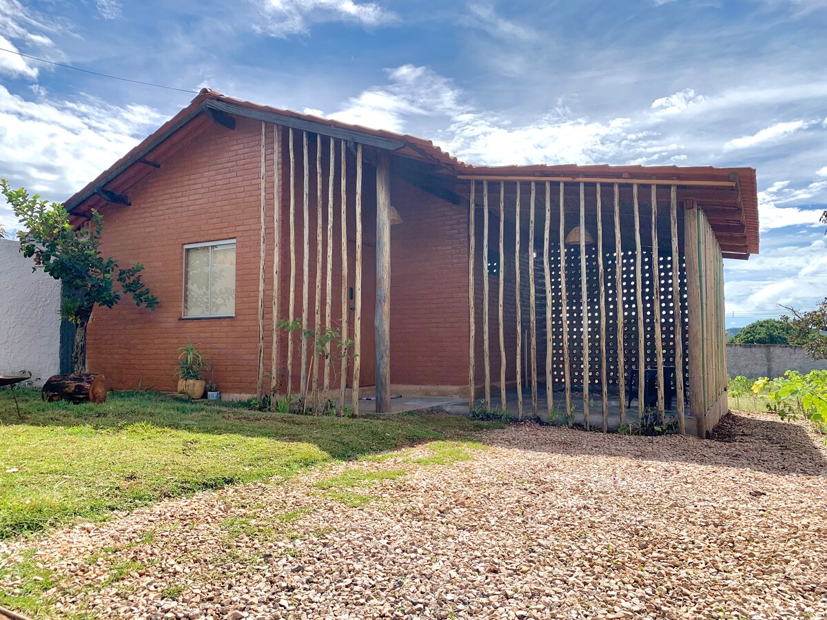 Situado en el corazón de la Chapada dos Veadeiros, donde el Cerrado y las montañas forman un paisaje. A solo 900 metros de la avenida principal. La casa fue diseñada con el objetivo de proporcionar vivienda refugiada en el silencio y la naturaleza. Todavía huele a nuevo y el jardín que se está sembrando trae el Cerrado al patio trasero. Cuenta con ambientes espaciosos, modernos y acogedores, incluyendo áreas que brindan experiencias únicas y ofrecen toda la comodidad de "sentirse como en casa, fuera de casa".