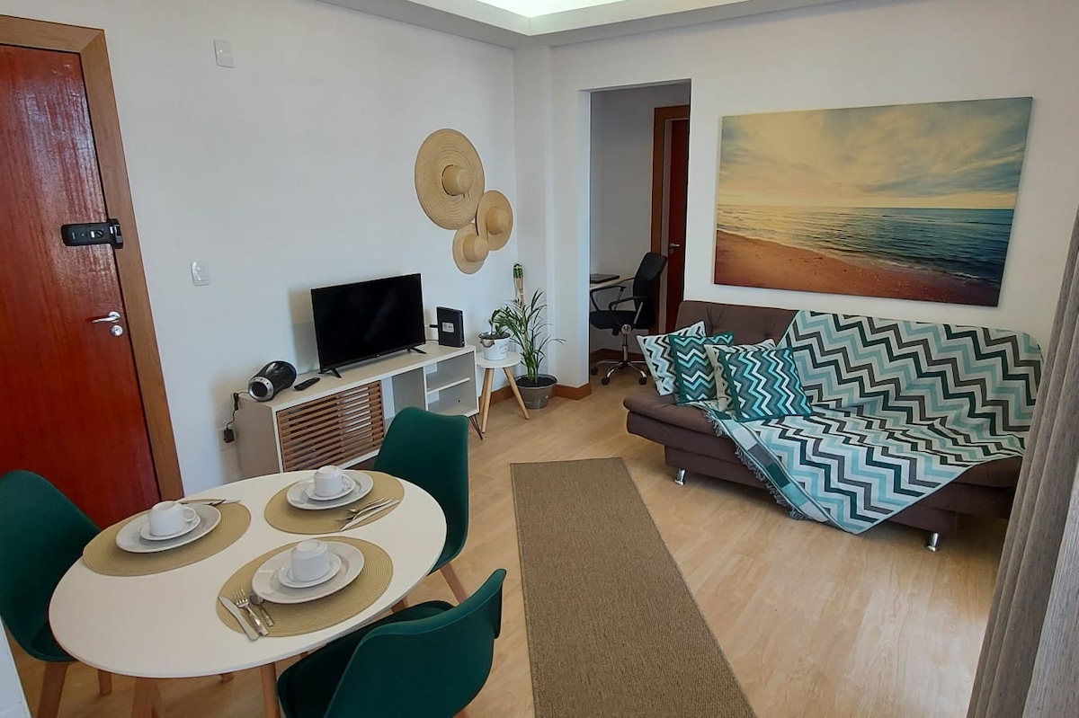 Estudio moderno y bien equipado, ideal para quienes buscan comodidad y practicidad. Cuenta con lavadora-secadora, aire acondicionado, Smart TV con Netflix y Prime Video, cocina completamente equipada y wifi rápido — perfecto tanto para viajes de trabajo como para escapadas de descanso. Excelente ubicación en Estreito, a pocos minutos del centro de Florianópolis, cerca del hospital, del estadio Orlando Scarpelli y del paseo marítimo. Incluye estacionamiento privado.
