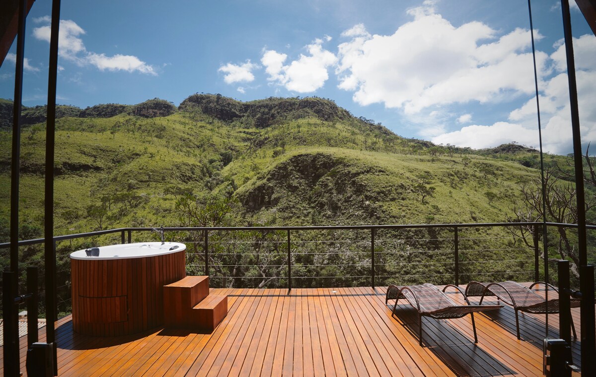 Espacio con refinamiento de Minas Gerais, tiene capacidad para 2 parejas. Vistas a la montaña, aire acondicionado, jacuzzi, en el centro de São José da Barra, MG, región de Capitólio, cañones, Parque Tuná y las principales atracciones de la región, como: Usina de Furnas, Cachoeira Capivara, Paraíso Perdido, Cachoeiras Pé da Serra, Retiro Vicking, Vale das Cachoeiras, Pedreira Lagoa Azul, Paraíso Achado, Diquadinha, Lagoa AzRestaurante do Turvo, excursiones en barco por el lago Furnas, Trilha do Sol. Restaurantes y m