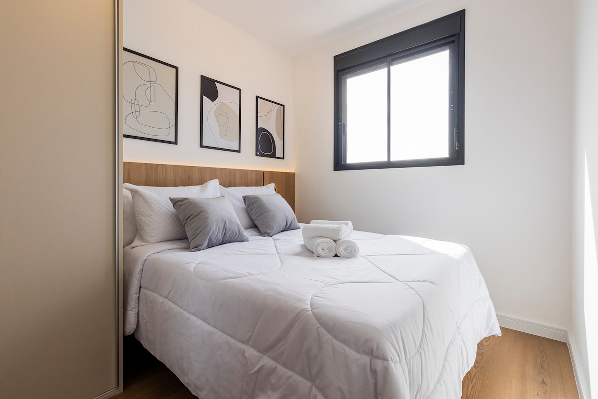 Hermoso apartamento, bien ubicado, muy completo, con aire acondicionado en el dormitorio, Smart TV de 40', ropa de cama y toallas incluidas en el alojamiento, apartamento con internet Wifi súper rápido (hasta 700mb de velocidad). Nuevo condominio con piscina, lavandería colectiva, coworking y zona gourmet. Garaje rotativo en el sótano (ver disponibilidad, plazas limitadas) Cerca: 600m - Metro Conceição 700m - Sede de Itaú Unibanco 800m - Metro Jabaquara 2 km - São Paulo Expo 4 km - Aeropuerto de Congonhas
