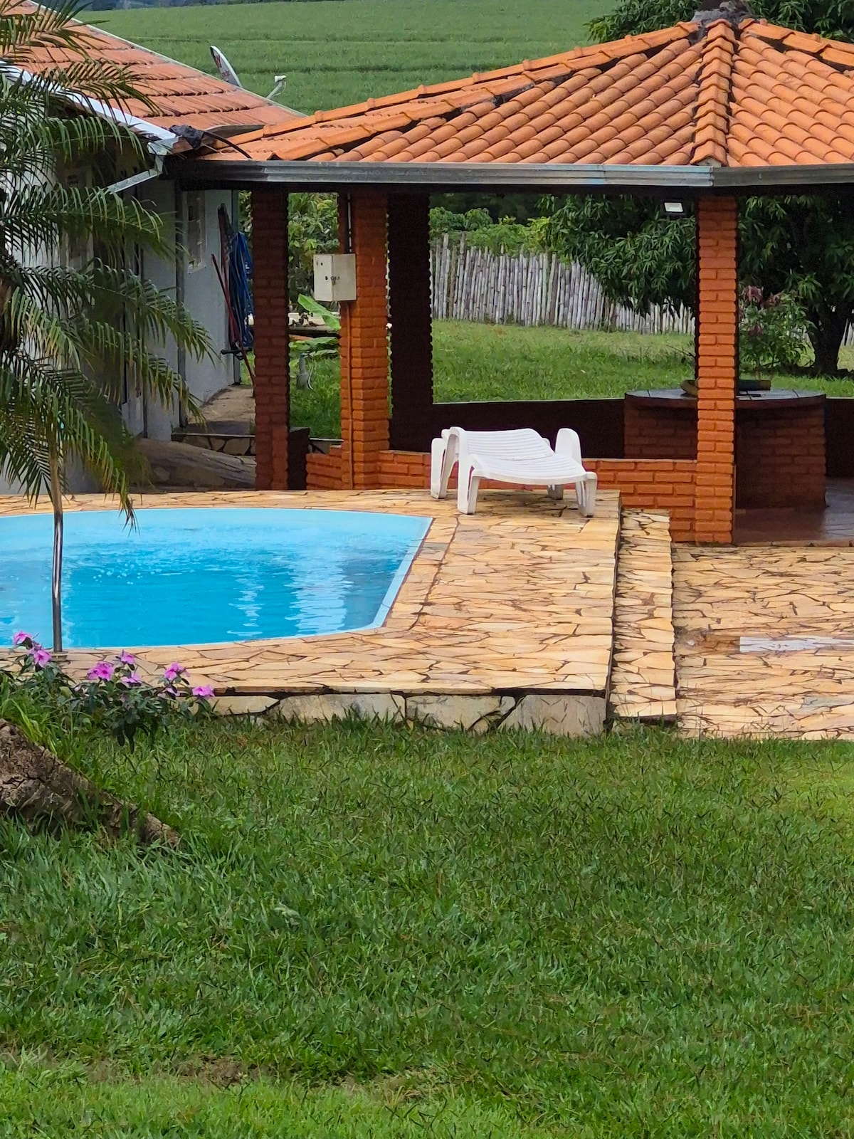 Casa de campo con piscina climatizada por energía solar. La cocina exterior cuenta con: elementos esenciales, nevera, congelador, microondas, filtro de agua, freidora de aire, cafetera 3 corazones, smartTV y 2 baños -Wi-Fi 🛜 - Suites con aire acondicionado -La habitación tiene lavabo, cómodo sofá y smartTV -Alquilamos la granja solo para hasta 10 personas -La chopeira no está incluida en el paquete -No proporcionamos almohadas ni ropa de cama/baño -Lavar los platos y sacar la basura después del checkout