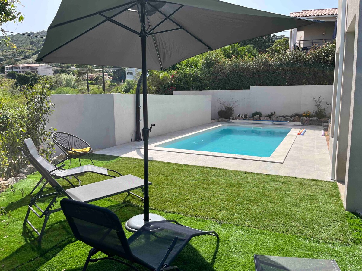 Piscine chauffée et plage de favone a 200m à pied