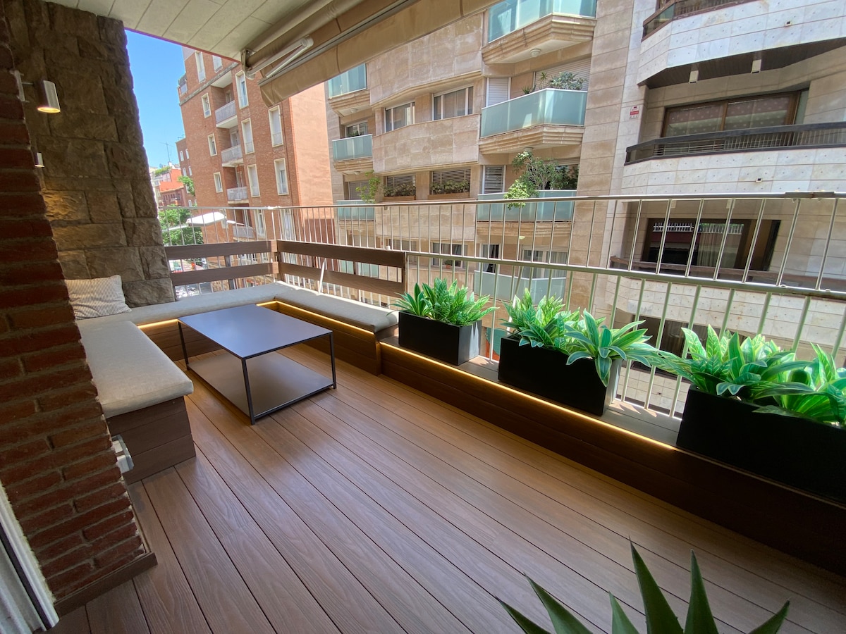 Piso encantador muy luminoso y espacio en Sarrià, la parte alta de Barcelona. Con una habitación doble y una gran sala con cocina ofrece espacio para dos e incluso tres personas. El suelo de tarima de roble le confiere una calidez única, los ventanales antiguos una luz y amplitud especiales. El lavabo dispone de una bañera en la que relajarse tras un largo día de paseos. Subiendo un nivel se encuentra la gran terraza de madera para desayunar, tomar el sol o incluso cenar. Internet gratuito