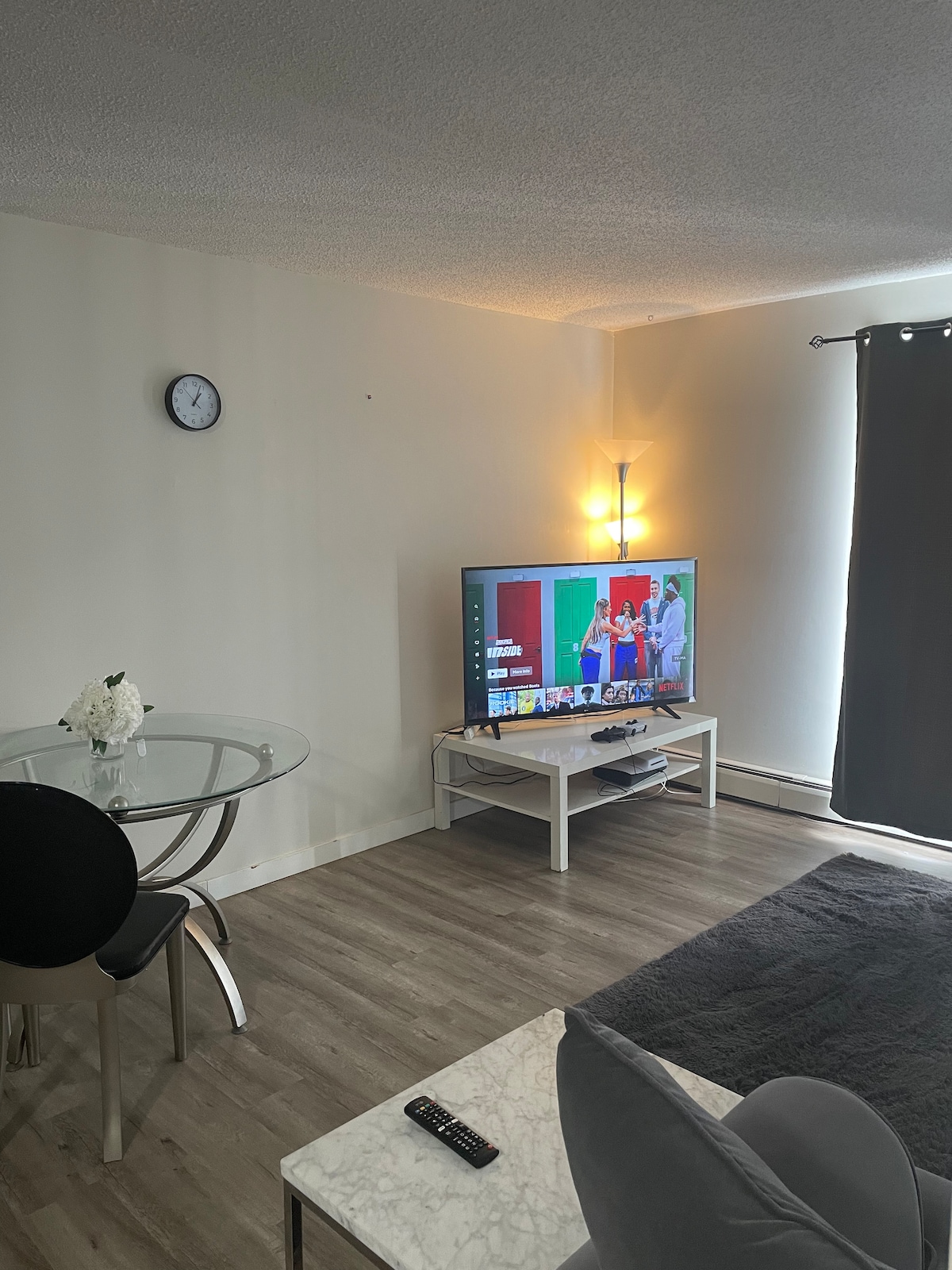 This home is perfectly located in downtown Saskatoon within walking distance to restaurants, shopping, the river, hospitals and U of S. The space is perfect for business professionals, family getaways, and of course, staycations. This space should offer everything you'll need to ensure you enjoy your time with us; from preparing your favourite meals, watching the beautiful Saskatchewan sunset or curling up on the couch and watching a movie on our 65" screen tv with Sonos surround sound.