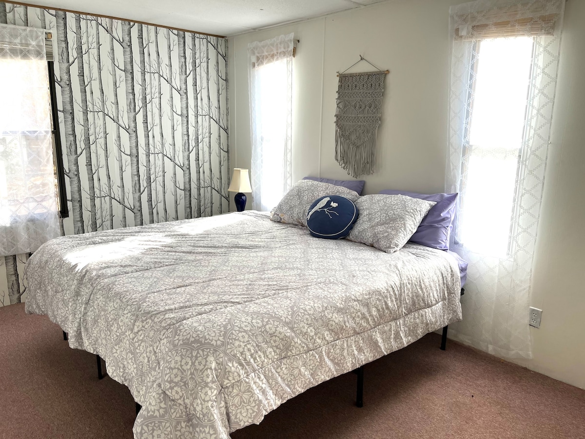 Habitación privada de 1 cama/1 baño convenientemente ubicada a 10 minutos de Graham, Saxapahaw y Mebane y a 30 minutos de Greensboro, Durham y Chapel Hill. Situado en Cranmore Meadows Tiny House Community, los huéspedes también tendrán acceso a una cocina comunitaria y a una lavadora/secadora cerca. Disfruta de la naturaleza en nuestra gran terraza con amplios muebles de patio y un jacuzzi. Nuestra propiedad de 30 acres tiene senderos a través de los prados, un estanque y un arroyo y es una vista perfecta de la vida en miniatura. Todos son bienvenidos: LGBTQ+BIPOC