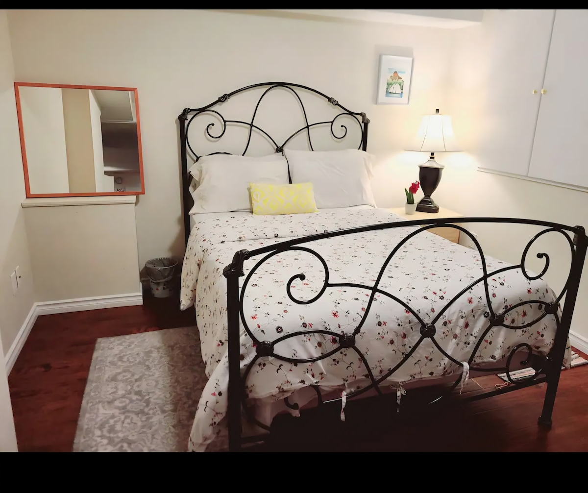 · Estacionamiento sin nieve, 1 cama 1 baño, 1 sala de estar, con lavandería completa y cocina, ¡refrigerador por supuesto! ¡Y son exclusivamente para tu uso! · Ambiente cómodo con cama tamaño queen, ambiente acogedor, así como entrada con teclado para garantizar tu seguridad. · Situado en un vecindario tranquilo. 1 minuto al parque forestal y campo de carrera. · Proporciona 1 estacionamiento. A 3 minutos a pie de las paradas de autobús. A 10 minutos en auto de la autopista 401. · Escapa del ajetreo y relájate en este pequeño apartamento sótano premium de alta privacidad.