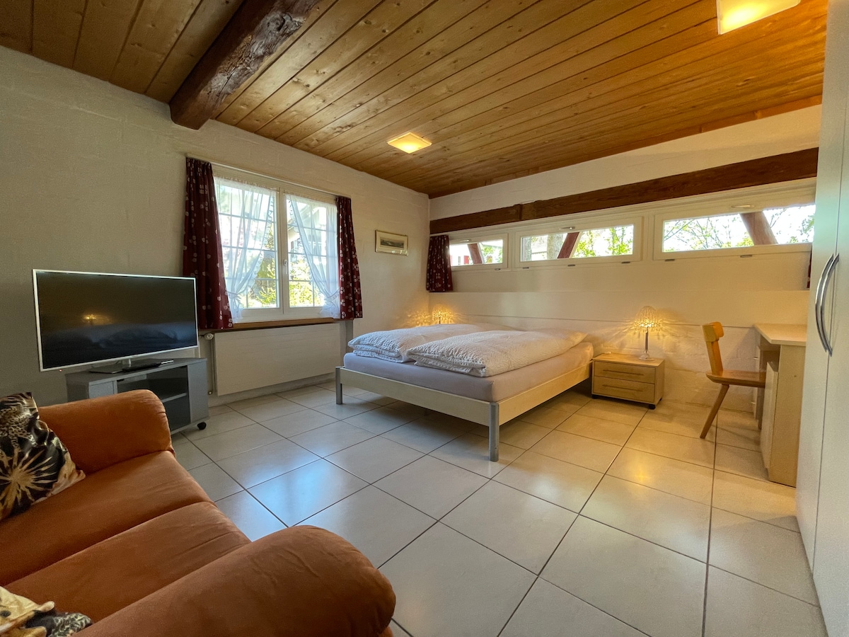 Nuestros huéspedes tienen su propio departamento, pero solo se alquila a una sola parte. Tiene dos camas dobles y una cama individual. Cuna bajo petición. El apartamento está en el segundo piso, accesible a través de escaleras (sin ascensor), pero muy tranquilo y con excelentes vistas de Munot, Rhine y Schaffhausen. Se puede llegar a pie a la ciudad de Schaffhausen en 10 minutos. El estacionamiento para su automóvil será proporcionado por nosotros. Gran terraza en la azotea para tomar el sol sin interrupciones.