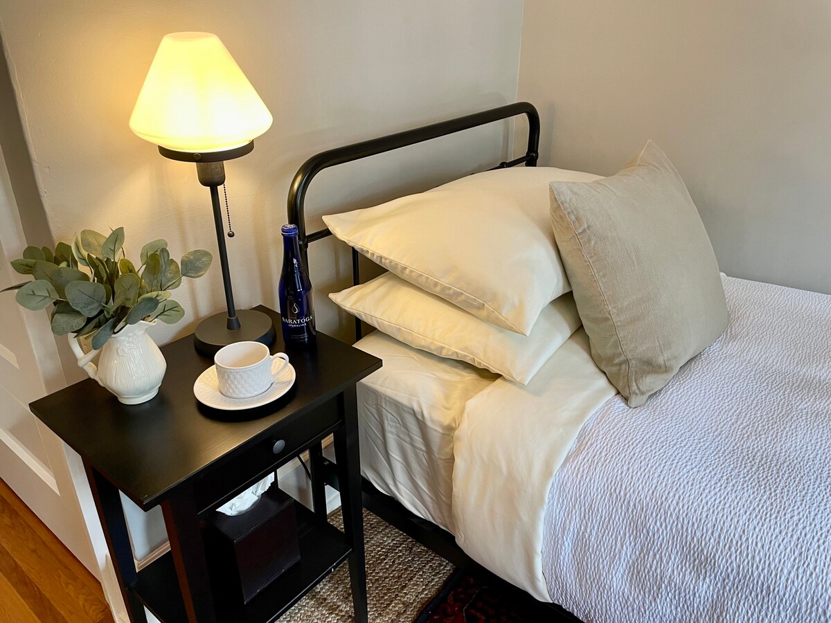 Adorable habitación doble con dos camas individuales en 16 Elm, mansión histórica